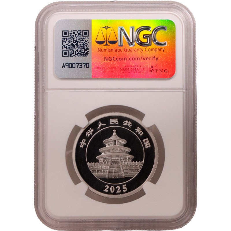 «Панда» 2025 года весом 30 г чистой платины выполнена в качестве пруф. Поставляется в капсуле. Тираж: 10 000 штук.