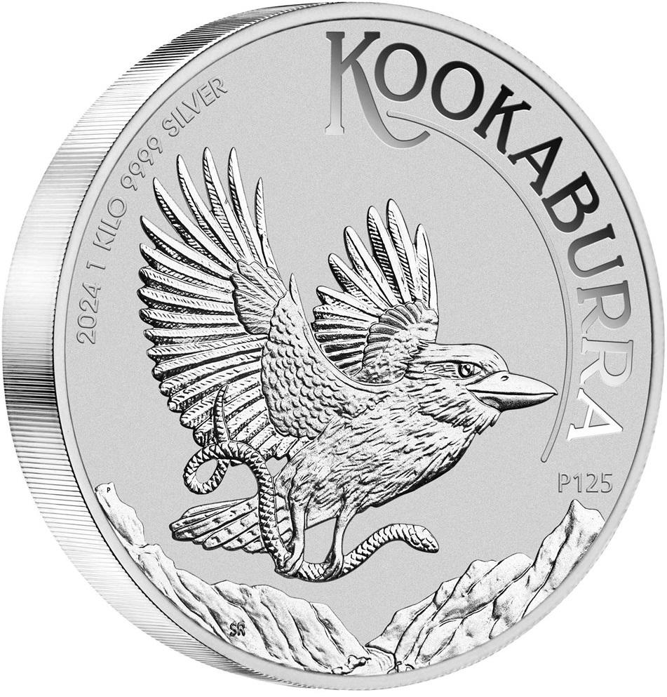 На реверсе изображена кукабарра, летящая над ущельем со змеей в когтях. На всех дизайнах монет имеется надпись «KOOKABURRA», знак монетного двора «P125», обозначающий 125-летие Пертского монетного двора, год выпуска - 2024, вес и чистоту - 1 kilo 9999 SILVER.