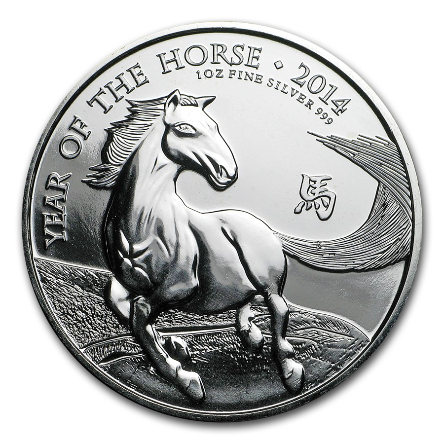 Серебряная монета Великобритании "Год Лошади" 2014 г.в., 31.1 г чистого серебра (Проба 999)