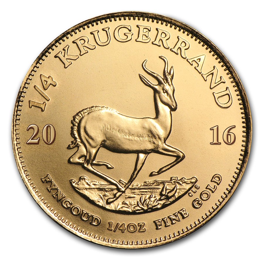 Концепция Южноафриканского Крюгерранда (South African Krugerrand) восходит к 1964 году, когда его рассматривали в качестве возможного средства при предоставлении основной массе населения доступа к частному владению золотом. Южноафриканский Монетный двор выпустил первую серию в 1967 году, и эта золотая монета стала первой в своем роде в мире. Монета выпускается в четырех различных вариантах по размеру и соответствующему весу. Согласно конституции страны и предписаниям центрального банка, Крюгерранд является законным средством платежа.