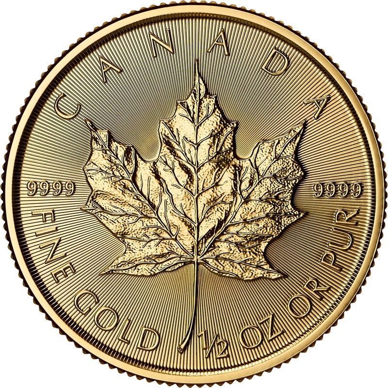 На реверсе изображение кленового листа работы Уолтера Отта (Walter Ott). Слева и справа надпись: 9999 (проба золота). Вдоль канта надпись: CANADA FINE GOLD 1/2 OZ OR PUR (страна-эмитент, вес золота).