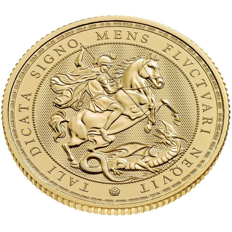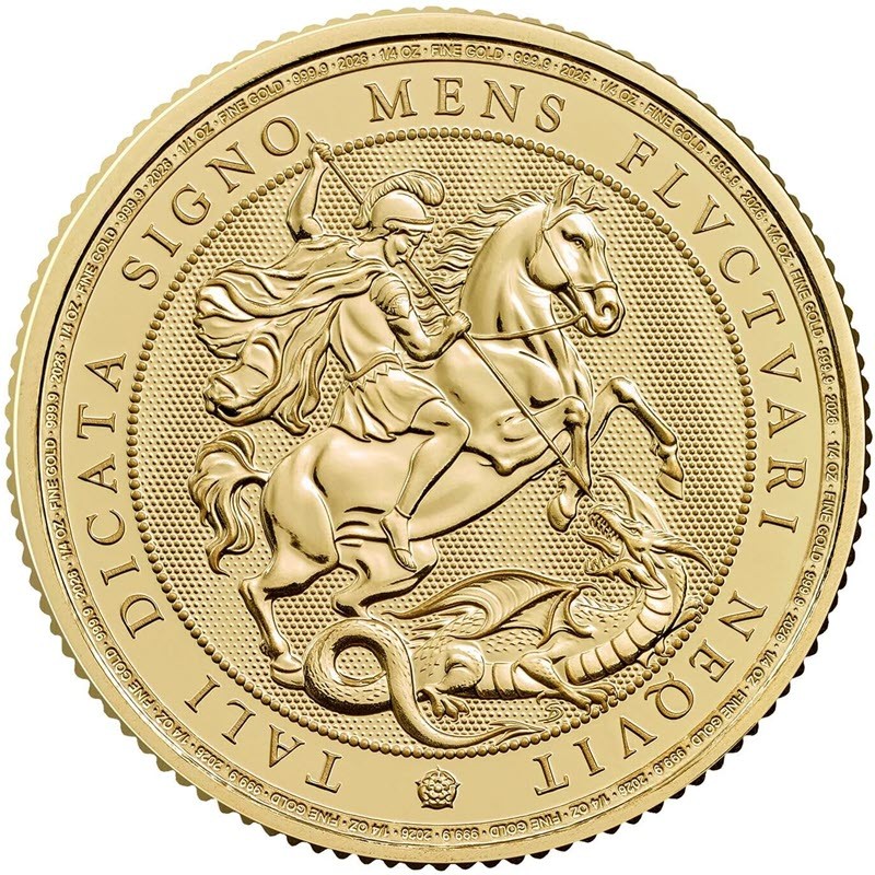 Золотая монета Великобритании «Святой Георгий и дракон» 2026 года от Королевского монетного двора весом в 1/4 унцию — третья в серии инвестиционных монет, посвященных этой легендарной истории.