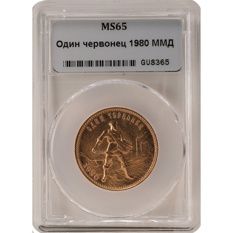 Золотой червонец СССР "Сеятель" (ММД) 1980 г.в. в слабе MS 65, 7.74 г чистого золота (проба 900)