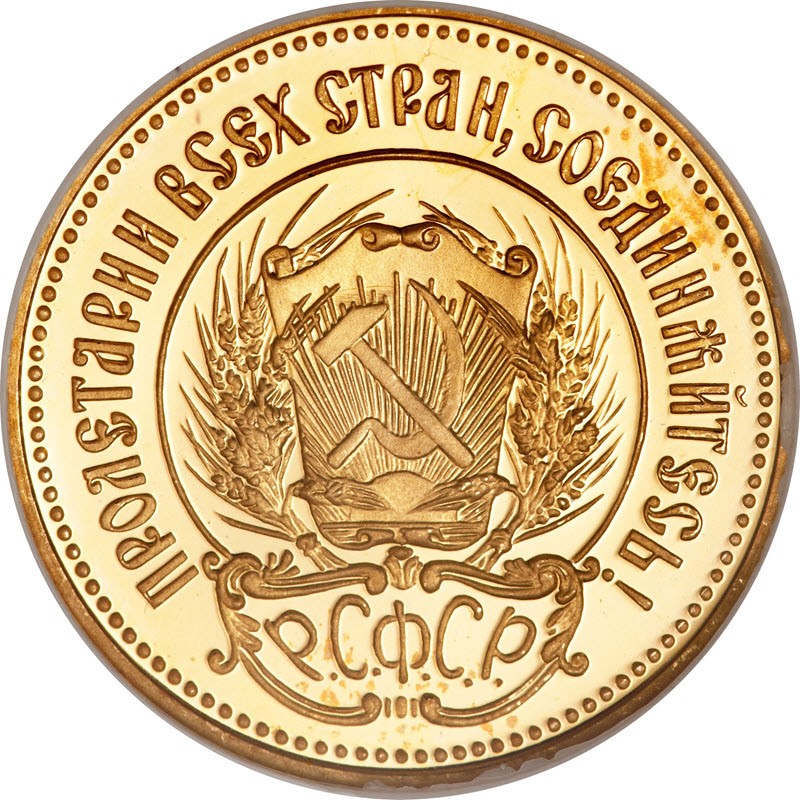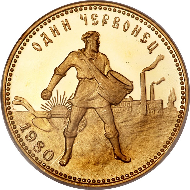 В 1922 году советское правительство приняло решение о создании устойчивой валюты, чтобы окончательно победить инфляцию. Такой валютой стал Золотой Червонец «Сеятель». На аверсе монеты изобразили герб РСФСР. Чеканить новую золотую монету начали в 1923 году на Петроградском монетном дворе. Производство Золотого Червонца шло параллельно с выпуском бумажных червонцев. По своим весовым и другим характеристикам (диаметр, толщина, проба золота) Золотой Червонец «Сеятель» полностью воспроизводил золотой червонец Николая II. В 1924 году герб РСФСР на Золотых Червонцах было решено заменить гербом СССР. Таких «Сеятелей» было отчеканено очень малое количество.