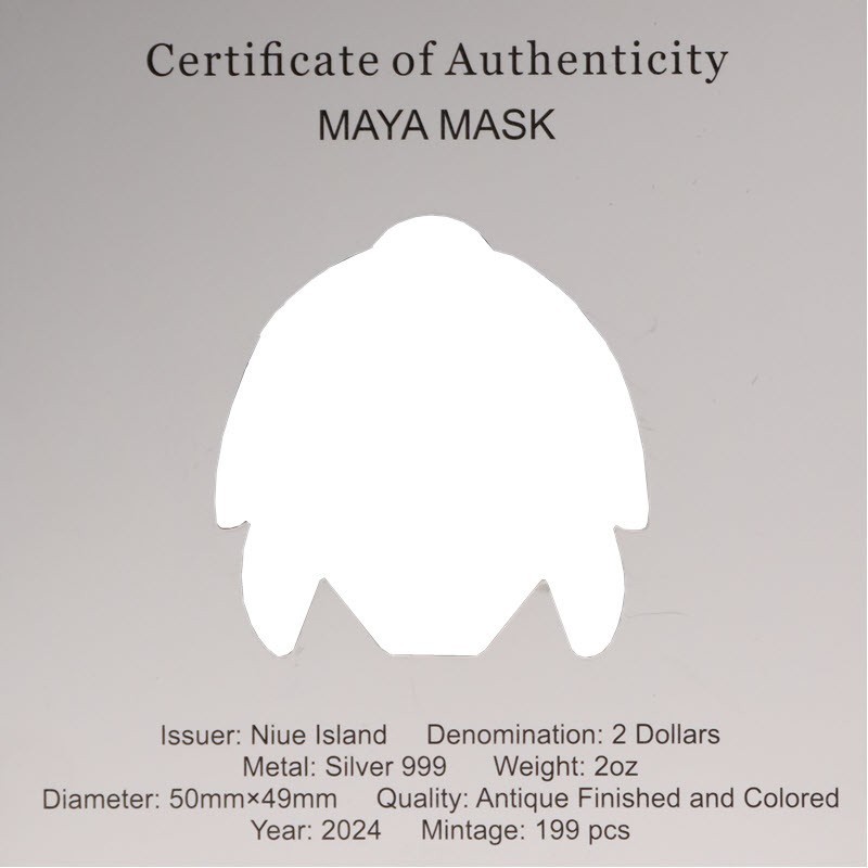 Серебряная монета Ниуэ "Маска Майя" 2024 г.в., 62.2 г чистого серебра (проба 999)