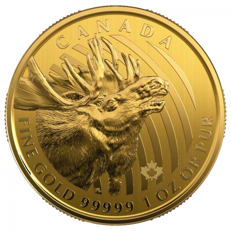 На монете изображена голова Лося , позади которой расходятся полукругом линии. Внизу по ободу помещена надпись: «FINE GOLD 99999 1 OZ OR PUR» (1 унция золота пробы 0,99999 или чистого золота), вверху указана страна-эмитент – «CANADA» (Канада).