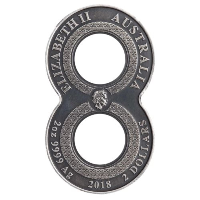 Эта фигурная 8-образная монета — первая в инновационном дизайне для Пертского монетного двора и первая такая монета в мире.