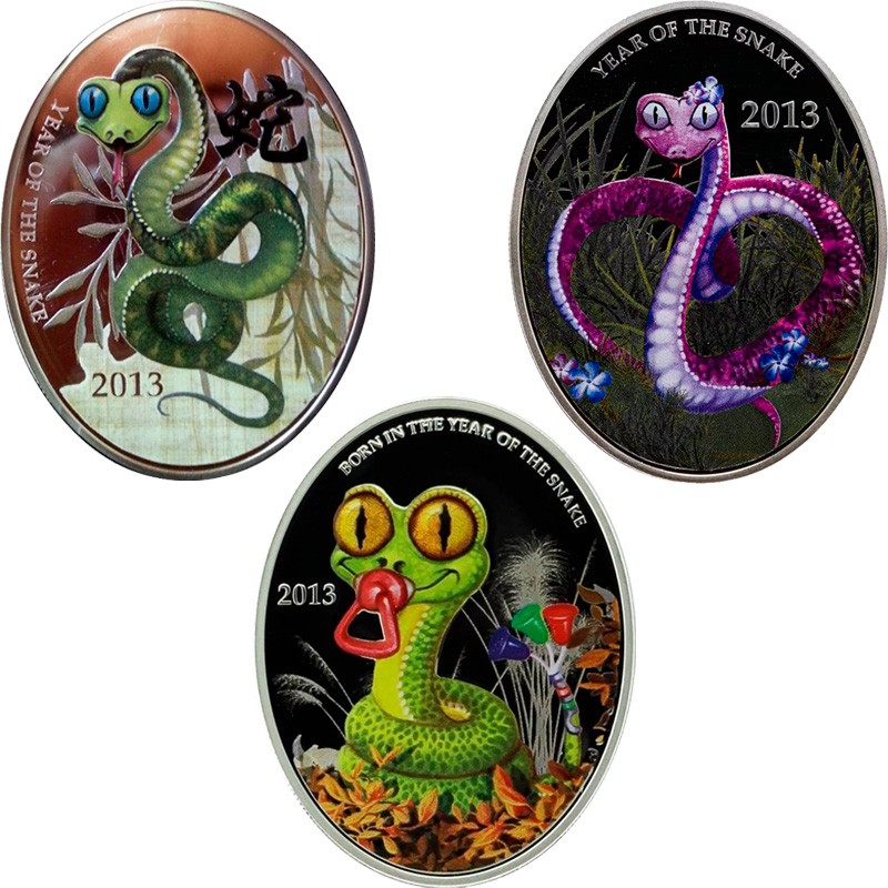 Этот чудесный набор из трёх серебряных монет 2013 года посвящен Году Змеи по восточному календарю.