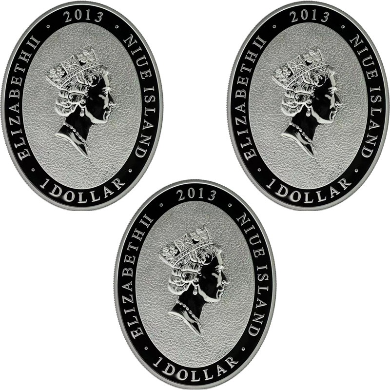 На аверсе каждой монеты - портрет королевы Елизаветы II дизайнера Рафаэля Дэвида Маклауфа (Raphael David Maklouf). Вдоль канта надпись: ELIZABETH II · 2013 · NIUE ISLAND · 1 DOLLAR · (Елизавета II, год чеканки, страна-эмитент, номинал).