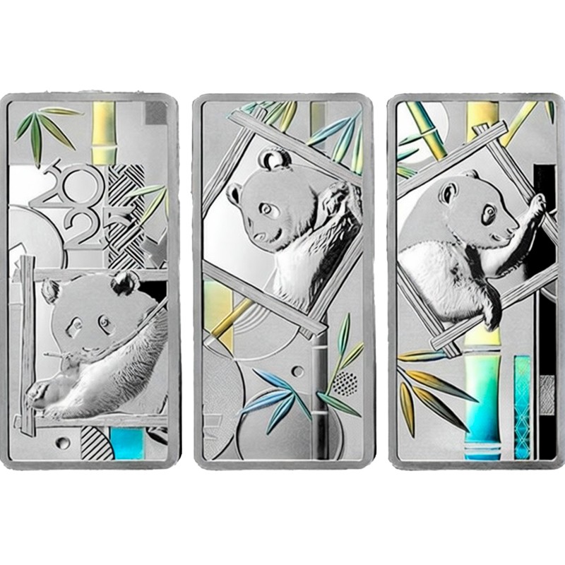 Набор из 3-х серебряных жетонов Китая "Панда" 2025 г.в., 3*20 г чистого серебра (проба 999)