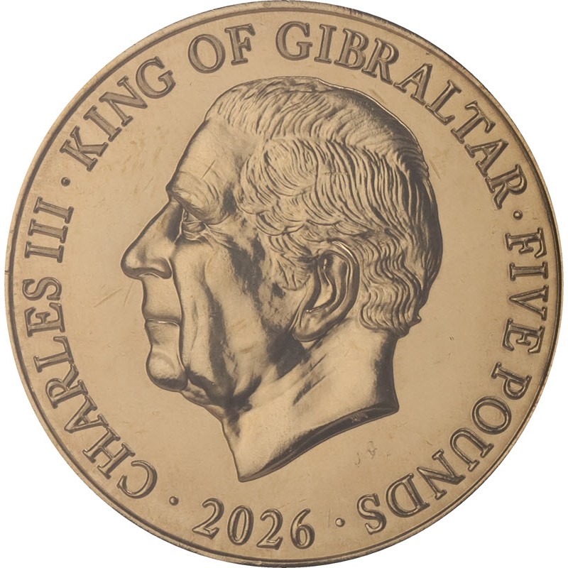 На аверсе монет изображен Его величество Король Чарльз III работы Рафаэля Маклауфа (Raphael David Maklouf). Вдоль канта надпись: CHARLES III · KING OF GIBRALTAR · XXX · 2026 · (Чарльз III, Король Гибралтара, номинал, год чеканки).