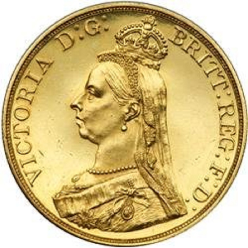 Бюст Королевы Виктории с малой короной и покрывалом. Надпись: VICTORIA D:G: BRITT: REG: F:D: