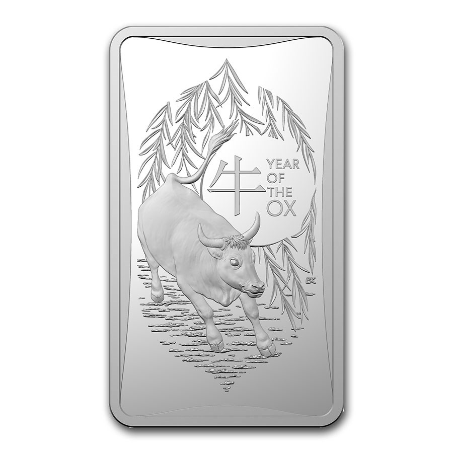 Прямоугольная монета «Год Быка» от Королевского монетного двора Австралии. Монета представлена в подарочном варианте — футляр, сертификат.