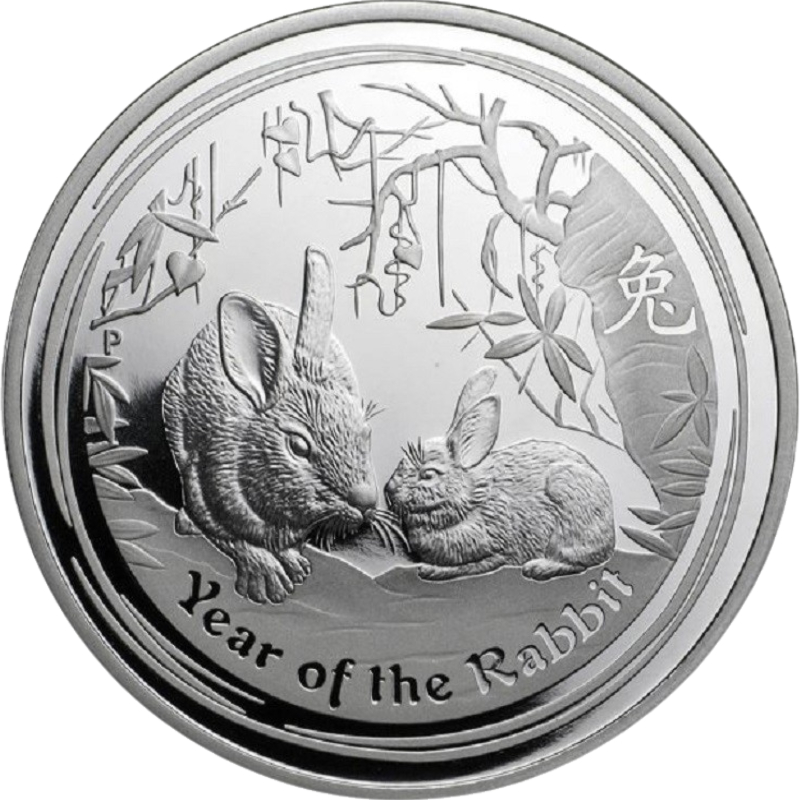 На реверсе изображены два кролика среди листвы - символ 2011 года по китайскому календарю. Справа - китайский иероглиф 兔 (Кролик), внизу надпись YEAR OF THE RABBIT (Год Кролика). Слева знак P – знак Пертского монетного двора.