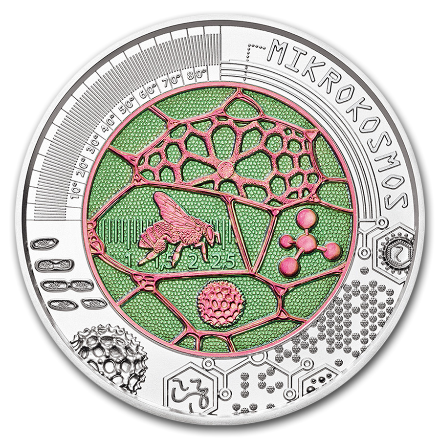 Австрийский монетный двор продолжает свою серию  Niobium с этой долгожданной монетой Microcosm. Как и все монеты серии, эта монета исследует путешествие науки. Этот год иллюстрирует красоту, обнаруженную на микроскопических уровнях.