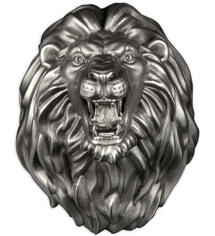 На реверсе изображена голова льва с открытой пастью и острыми зубами.