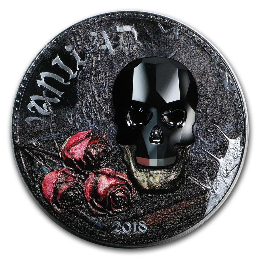 Хрустальный Череп, первая монета из серия со сверкающими кристаллами Swarovski®. Ограниченный тираж.
