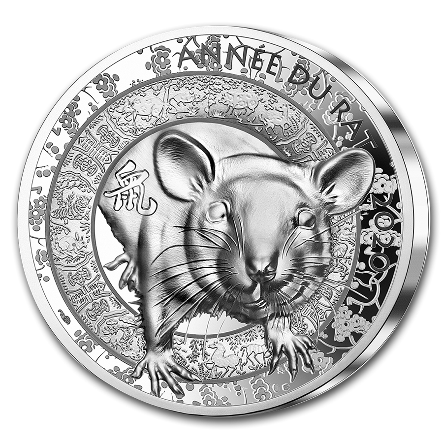 В центре монеты изображена крыса, окруженная кругом традиционных китайских мотивов. Крыса, кажется, проходит монету, используя дверь, показанную на обороте. Иероглиф животного изображен на самой крысе и был нарисован Чанцином Чжао, вице-президентом Китайского общества каллиграфии.