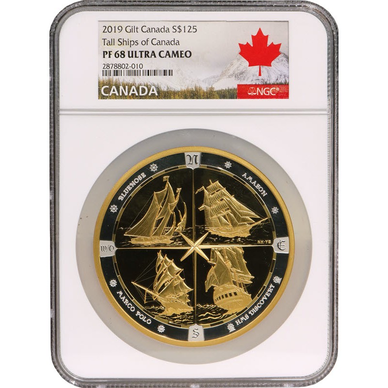 Эта удивительная серебряная монета весом 0,5 кг от Королевского монетного двора Канады посвящена легендарным парусникам Канады. У нее качество пруф и выборочное золочение. Поставляется в слабе. Тираж: 500 штук.