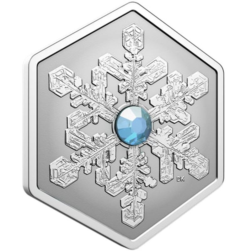 Эта чудесная серебряная монета от Канадского монетного двора – вторая из серии «Снежинка». У неё качество пруф и вставка из кристалла голубого цвета.