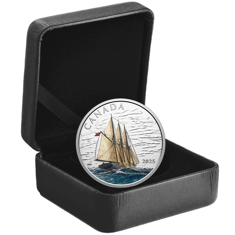 Серебряная монета Канады "Высокие корабли. Трёхмачтовая шхуна" 2025 г.в., 23.17 г чистого серебра (проба 9999)