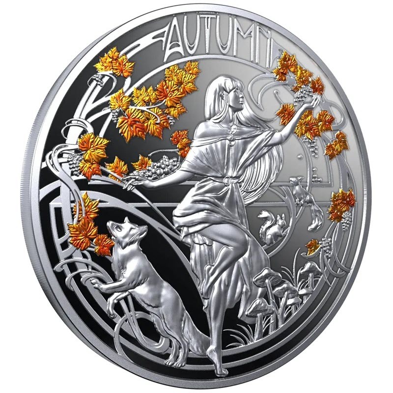 Серебряная монета Ниуэ "Четыре времени года. Осень" 2025 г.в. , 31.1 г чистого серебра (проба 999)