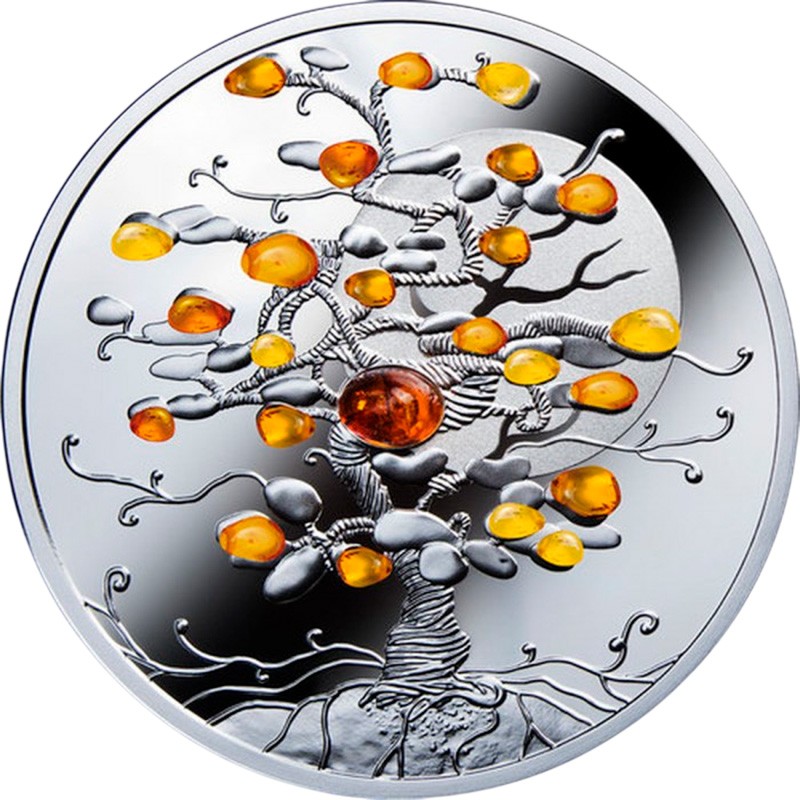 Эта чудесная серебряная монета весом в 1 унцию Польского монетного двора – первая в серии "Дерево удачи" (Tree Of Luck), хранит в себе древнюю силу янтаря - камня, олицетворяющего солнечную энергию, радость и физическое благополучие.