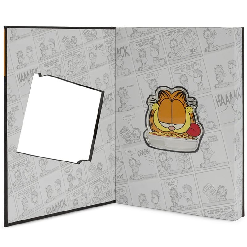 Эта чудесная серебряная монета в 1 унцию от Новозеландского монетного двора посвящена Гарфилду. У нее размеры 53 х 56 мм, качество пруф и селективная окраска. Поставляется в блистере с сертификатом подлинности. Тираж: 1000 штук.