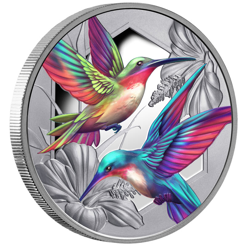 Эта чудесная серебряная монета весом 1 унция посвящена колибри. У нее качество пруф и селективная окраска. Поставляется в оригинальном футляре с пронумерованным сертификатом подлинности. Тираж: 750 штук.