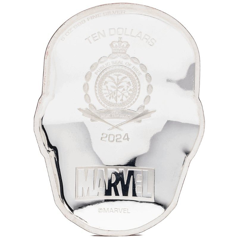 Серебряная монета Ниуэ "Марвел. Шлем Железного человека" 2024 г.в. (пруф с цветом), 155.5 г чистого серебра (проба 999)