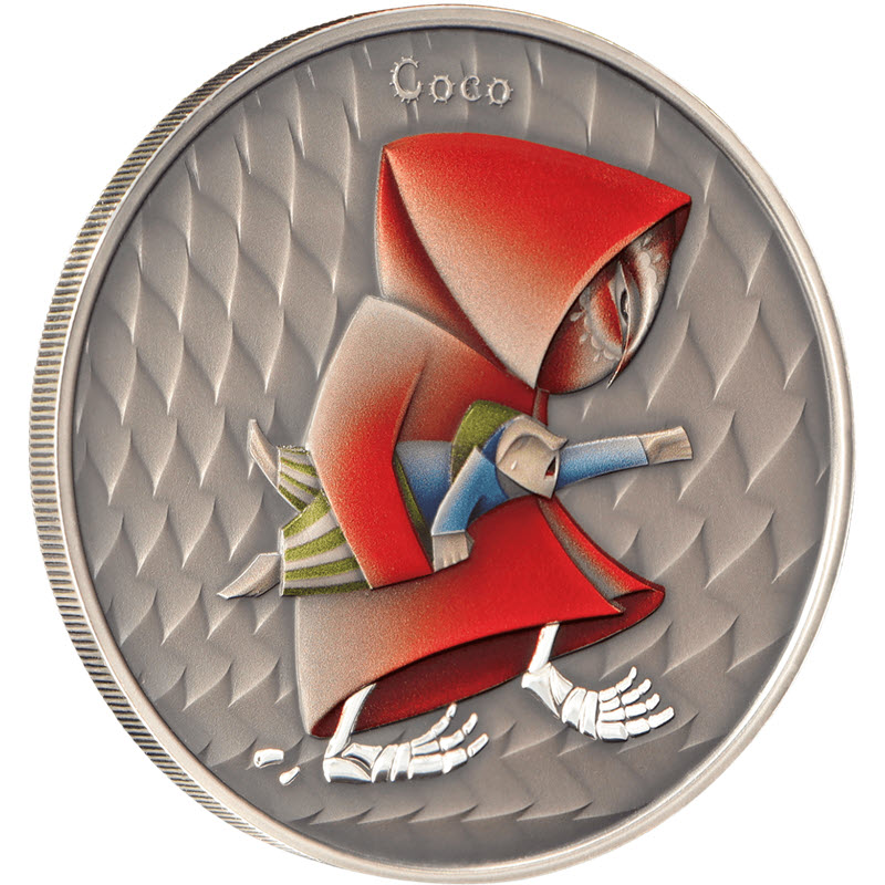 На реверсе изображен Коко в капюшоне, похитивший непослушного ребенка. Вверху надпись: Coco.