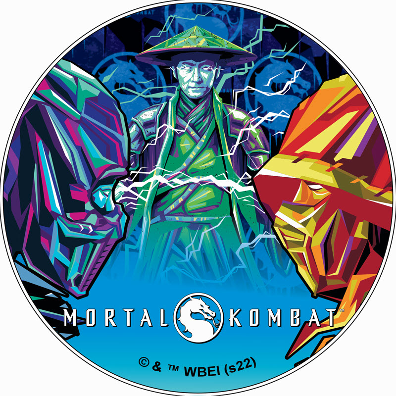 На реверсе изображены Райден, Саб-Зиро и Скорпион в флуоресцентном цвете. Внизу надпись в две строки: MORTAL KOMBAT © & ™ WBEI (s22).