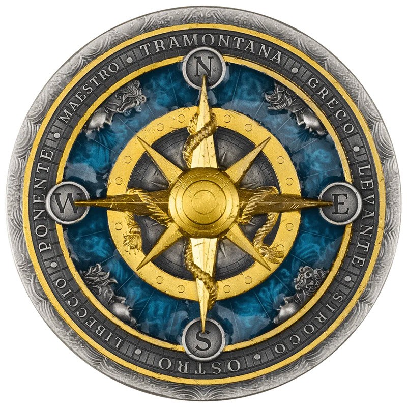 Эта потрясающая серебряная монета весом 2 унции посвящена компасу - символу направления, выбора и непоколебимой цели. У нее качество античной отделки, выборочное золочение и заполнение смолой. Поставляется в оригинальном футляре с компасом и сертификатом подлинности. Тираж: 500 штук.
