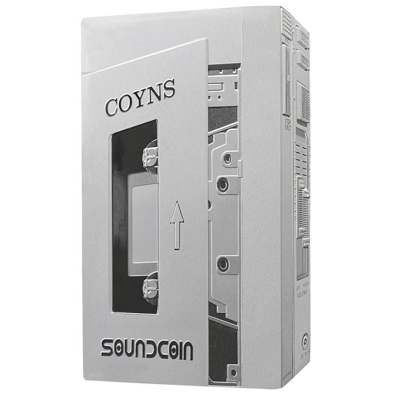 На реверсе изображен Walkman. Маленькая крышка кассетного отсека широко открыта. Внутри — углубление, готовое вместить вашу любимую кассету. По краю с высокой точностью видны технические детали: кнопка остановки/извлечения, ползунки громкости влево/вправо, кнопка микрофона и разъём питания. Вверху надпись: COYNS, внизу: SOUNDCOIN.