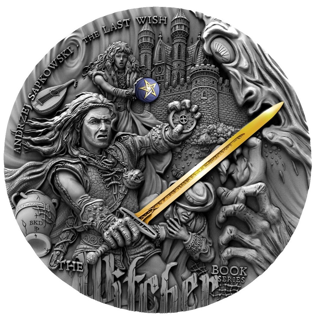 Эта невероятная серебряная монета весом в 2 унции, созданная в сотрудничестве с известным писателем Анджеем Сапковским. В этом издании — Ведьмак. У монеты невероятный рельеф, селективное золотое покрытие и она поставляется в футляре вместе с сертификатом подлинности.