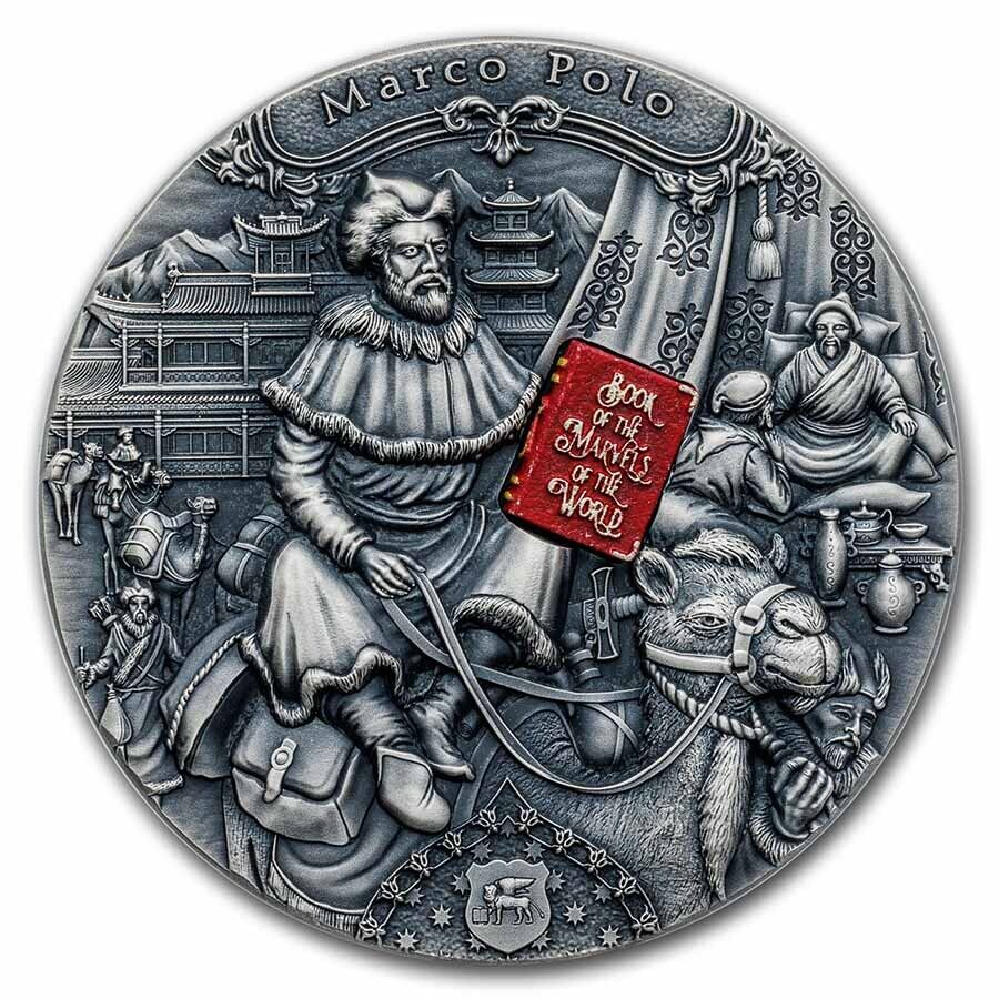 Эта потрясающая серебряная монета весом 2 унции является новым выпуском в новой серии "Знаменитые исследователи" и изображает знаменитого Марко Поло. Монета имеет невероятный высокий рельеф, 3D-вставку в виде книги, имеет качество античной отделки и поставляется в элегантном футляре вместе с сертификатом подлинности. Ограниченный тираж 500 штук по всему миру.