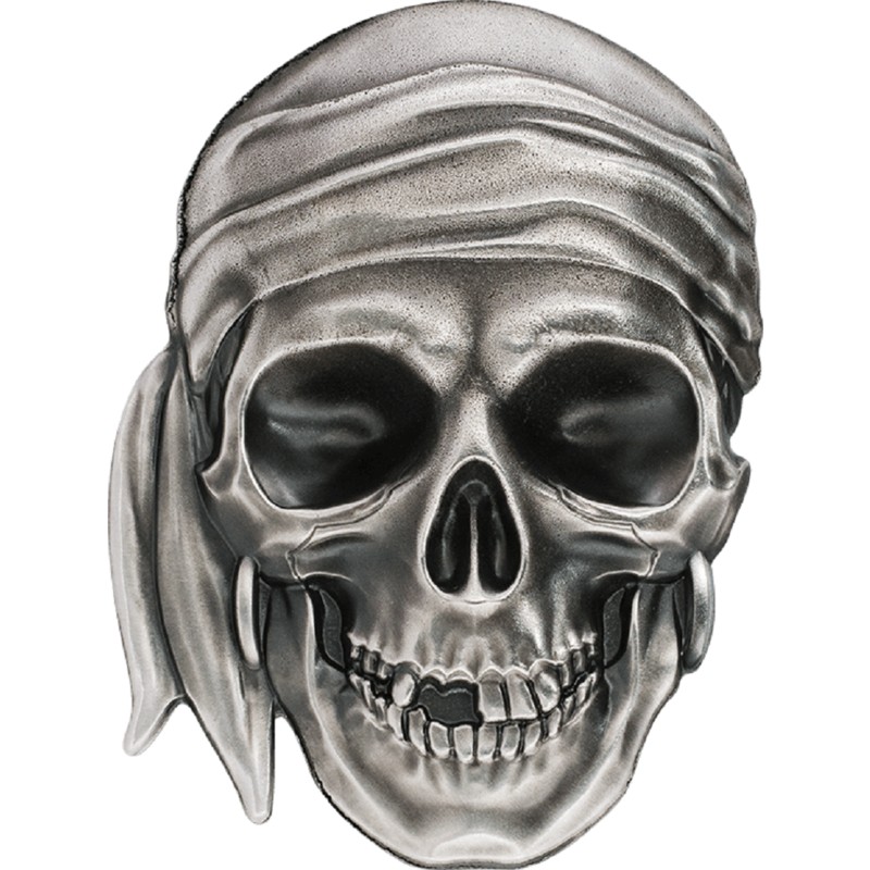 Эта невероятная серебряная монета весом в 1 унцию не только изображает невероятный пиратский череп, но и полностью сформирована и детализирована для получения реалистичного вида. Монета изготовлена по технологии Smartminting, имеет античное качество отделки и поставляется в футляре вместе с сертификатом подлинности. Ограниченный тираж - всего 1750 штук по всему миру!