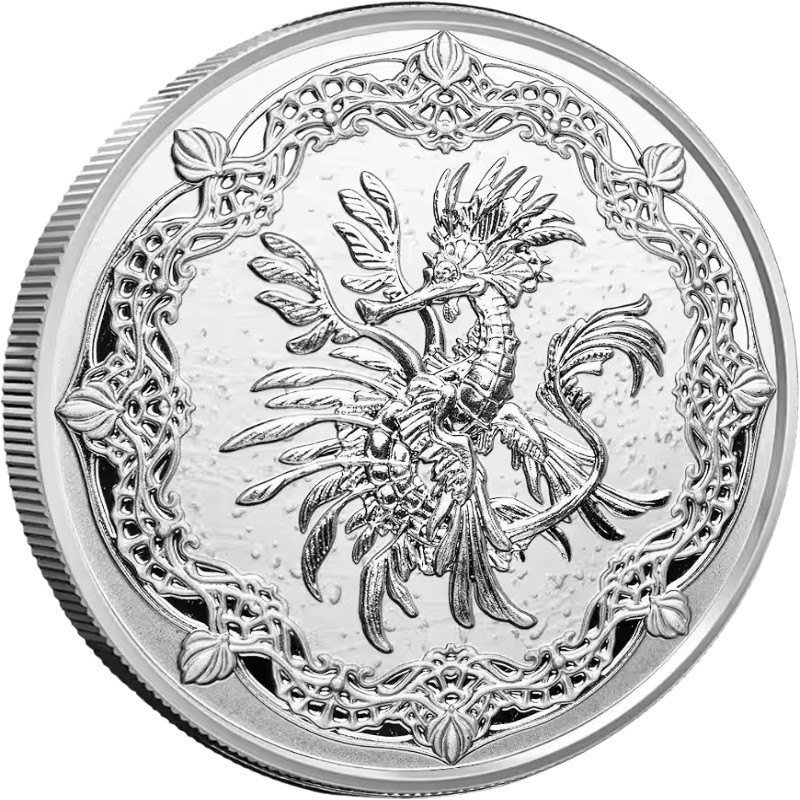 Эта чудесная серебряная монета Скоттсдейлского монетного двора с изображением удивительной рыбы - Морского дракона. Монета является частью серии «Морской конек».