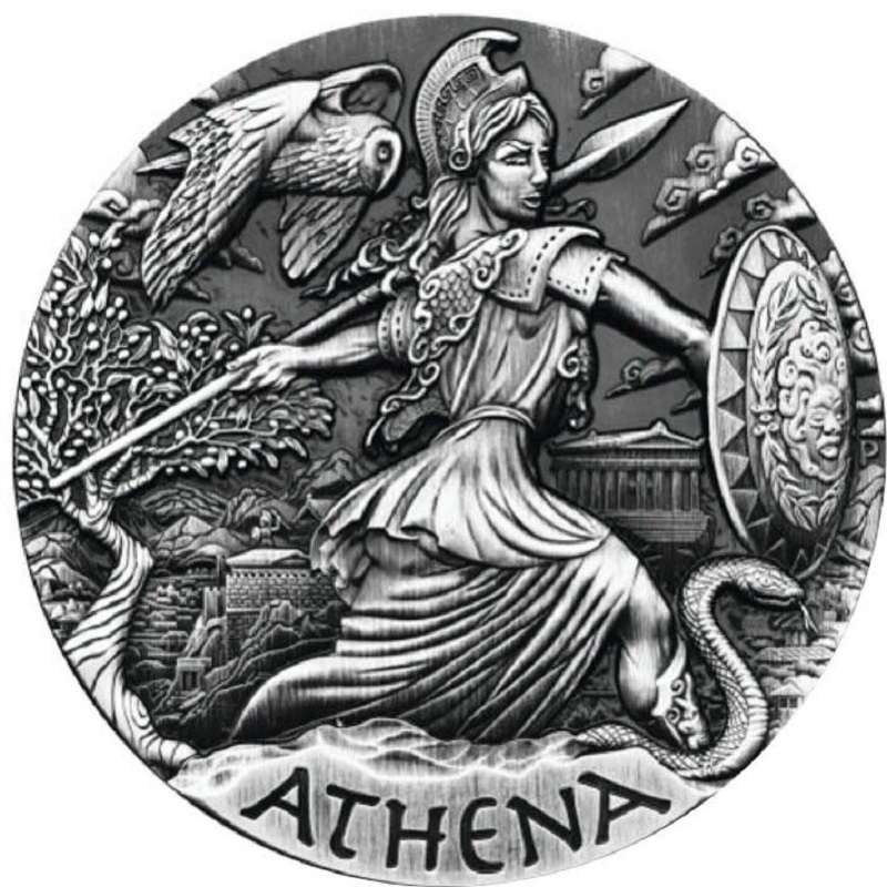 Монета из серии «Богини Олимпа» представляет собой впечатляющую монету без оправы с высоким рельефом и античной отделкой весом 2 унции, посвященную Афине. Афина олицетворяла мужество, вдохновение, закон и справедливость, математику, силу, стратегию, искусство и ремесла. Ее также считали богиней войны и спутницей многих героев, включая Одиссея, Ясона и Геракла. Ограниченный тираж 2000 шт.