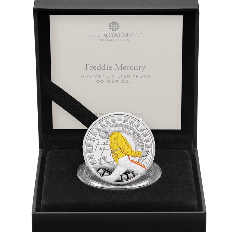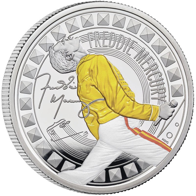 Серебряная монета Великобритании "Легенды музыки. Фредди Меркьюри" 2025 г.в. (пруф), 31.1 г чистого серебра (проба 999)