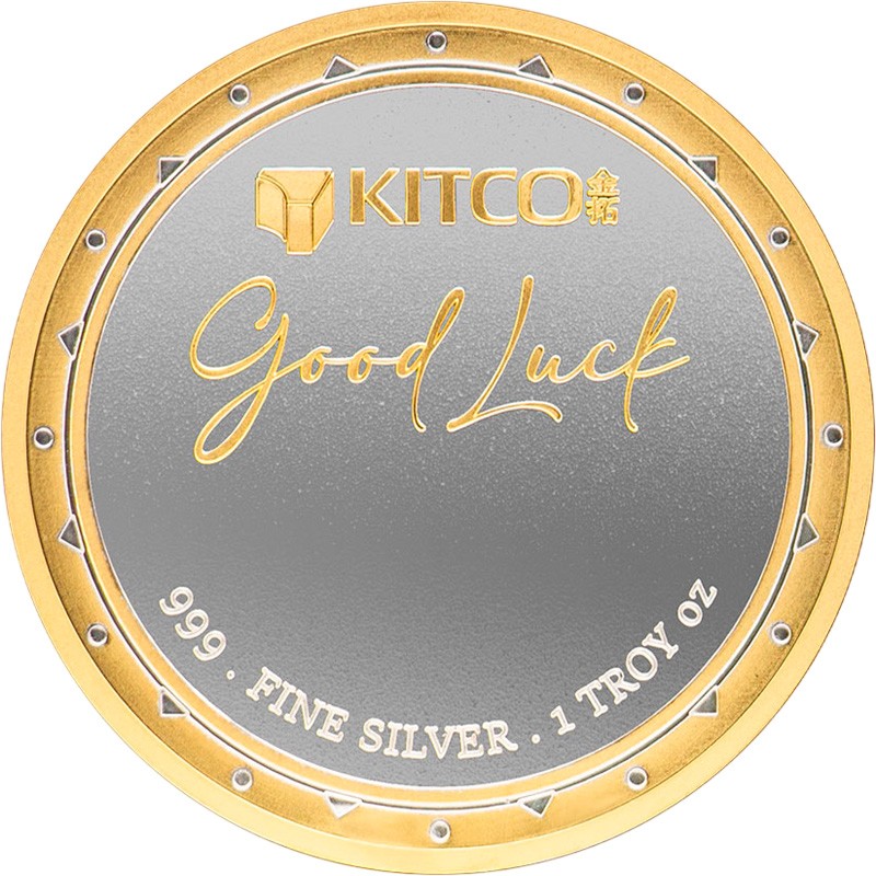 На аверсе в центре расположен официальный логотип компании Китко — абстрактная геометрическая фигура. Вверху надпись в две строки: KITCO 福 Good Luck 999.  FINE SILVER . 1 TROY oz (название компании; иероглиф, обозначающий удачу; серия, вес и проба серебра).