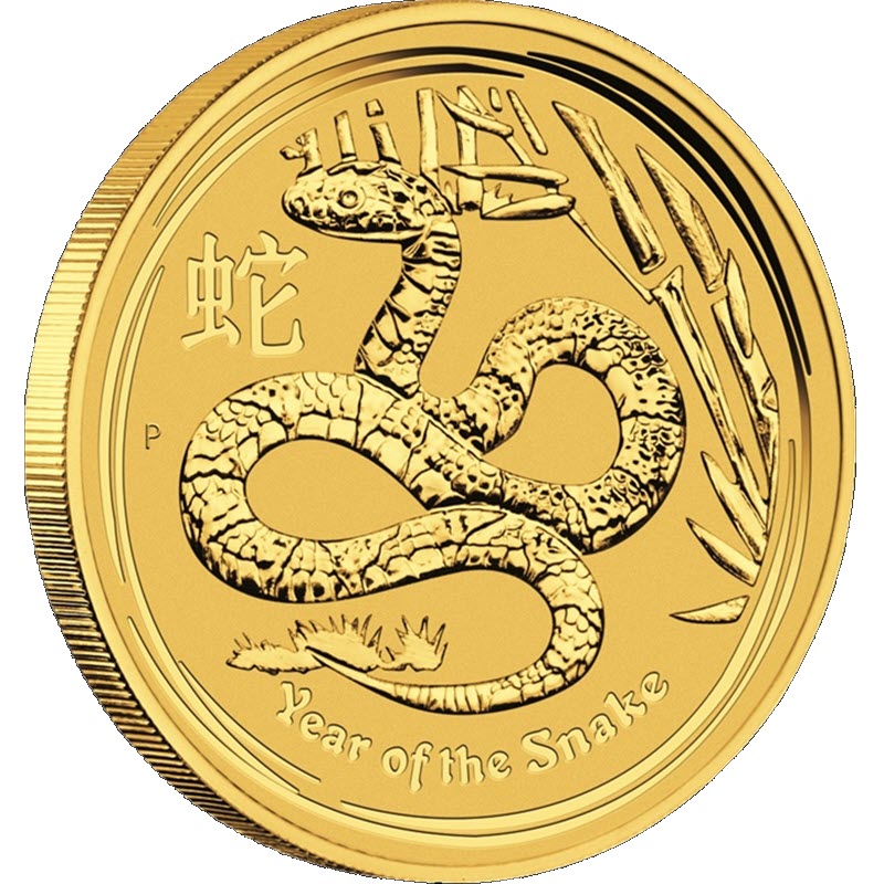 Золотая монета из серии "Лунный календарь" - год Змеи - выпущена Пертским монетным двором в 2013 году.