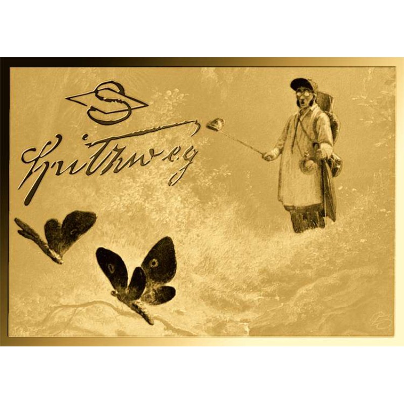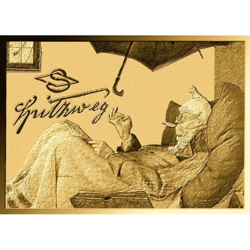 Эта потрясающая золотая монета весом 1/1000 унции посвящена картинам Карла Шпицвега. У нее размеры 11 Х 15.4 мм и качество пруф-лайк. Поставляется в карточке с сертификатом подлинности. Тираж: 50 000 штук.