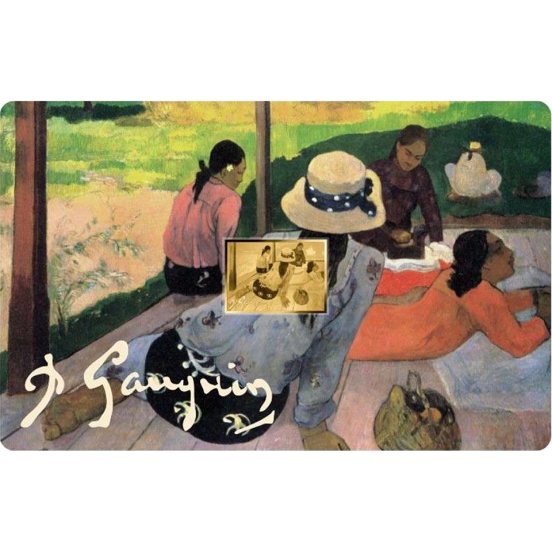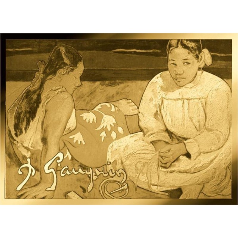 Эта потрясающая золотая монета весом 1/1000 унции посвящена картинам Поля Гогена. У нее размеры 11 Х 15.4 мм и качество пруф-лайк. Поставляется в карточке с сертификатом подлинности. Тираж: 50 000 штук.