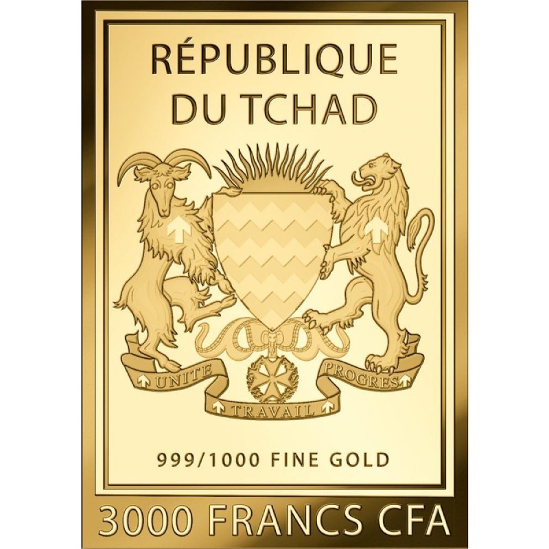 На аверсе всех монет изображен герб Республики Чад. Вокруг герба надпись: REPUBLIQUE DU TCHAD 999/1000 FINE GOLD 3000 FRANCS CFA (страна-эмитент, номинал, проба золота).