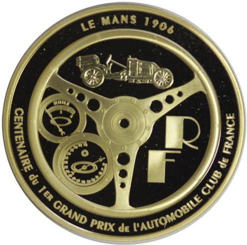 Золотая монета Франции «1-й гран-при Ле Манш» 2006 года выпуска посвящен автопробегу, состоявшемуся 26-27 июня 1906 года за пределами города Ле-Манш. Ограниченный тираж.