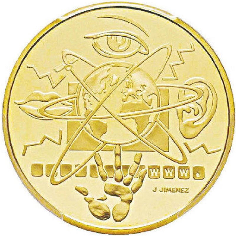 Золотая монета из серии «ХХ век» и посвящена возникновению Интернета.