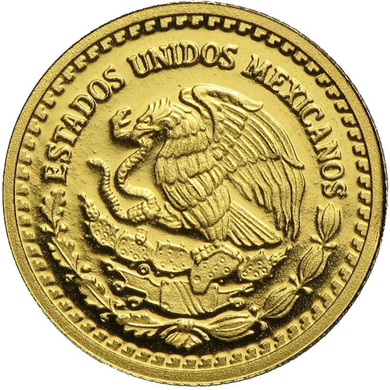 На реверсе монеты изображена статуя крылатого ангела победы, расположенной на вершине Мексиканской Колонны Независимости, которая символизирует освобождение страны от испанской колонизации и находится в центре Мехико. Ангел расположен между двумя «Пиками Влюбленных» – двумя застывшими вулканами Попокатепетль и Истаксиуатль, названных в честь двух влюбленных - великого воина и принцессы из племени ацтеков, которые любили друг друга и должны были пожениться, но так и не смогли быть вместе, так как оба погибли из-за происков завистников. В верхней части реверса нанесена надпись "1/4 ONZA ORO PURA", "LEY .999", что в переводе означает: «1/4 УНЦИИ ЧИСТОГО ЗОЛОТА .999 ПРОБЫ» и год выпуска монеты. Справа от изображения статуи расположен знак Мексиканского Монетного Двора.
