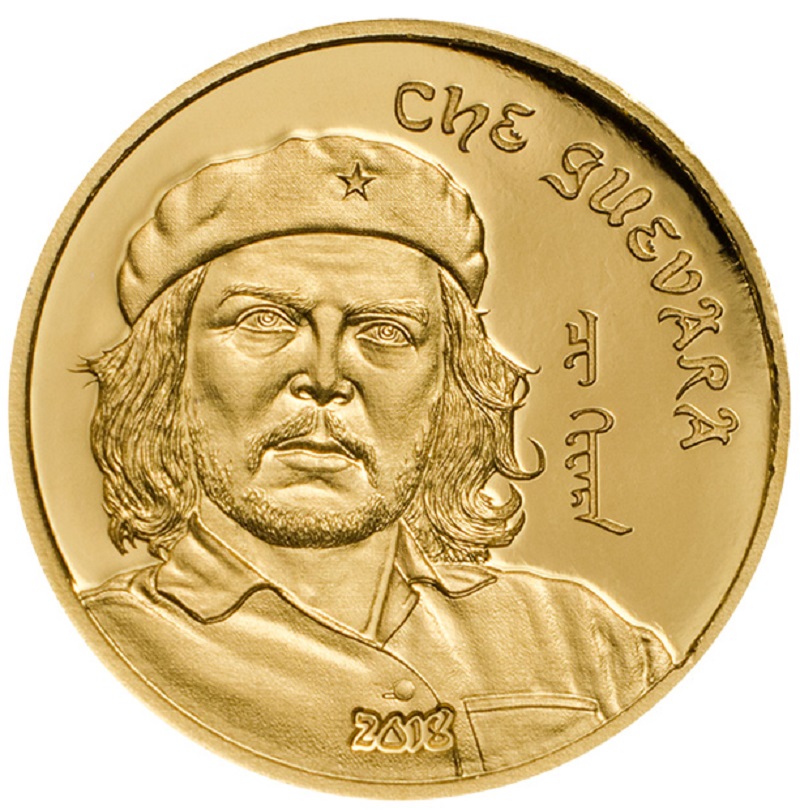 Эта красивая золотая монета посвящена одному из самых известных южноамериканских политических лидеров и революционеров - Эрнесто Гевара де ла Серна, также известному как "Че"