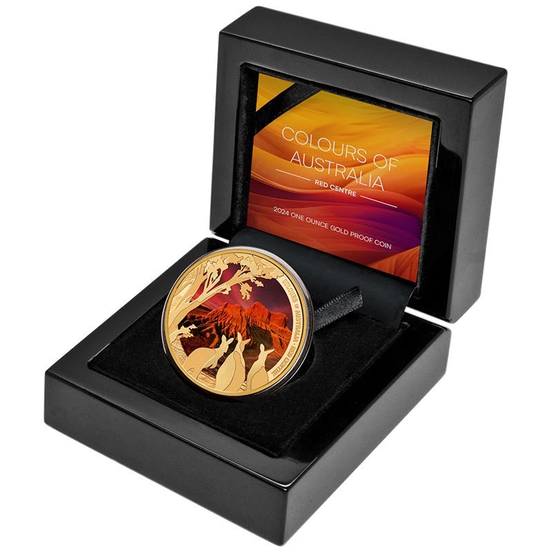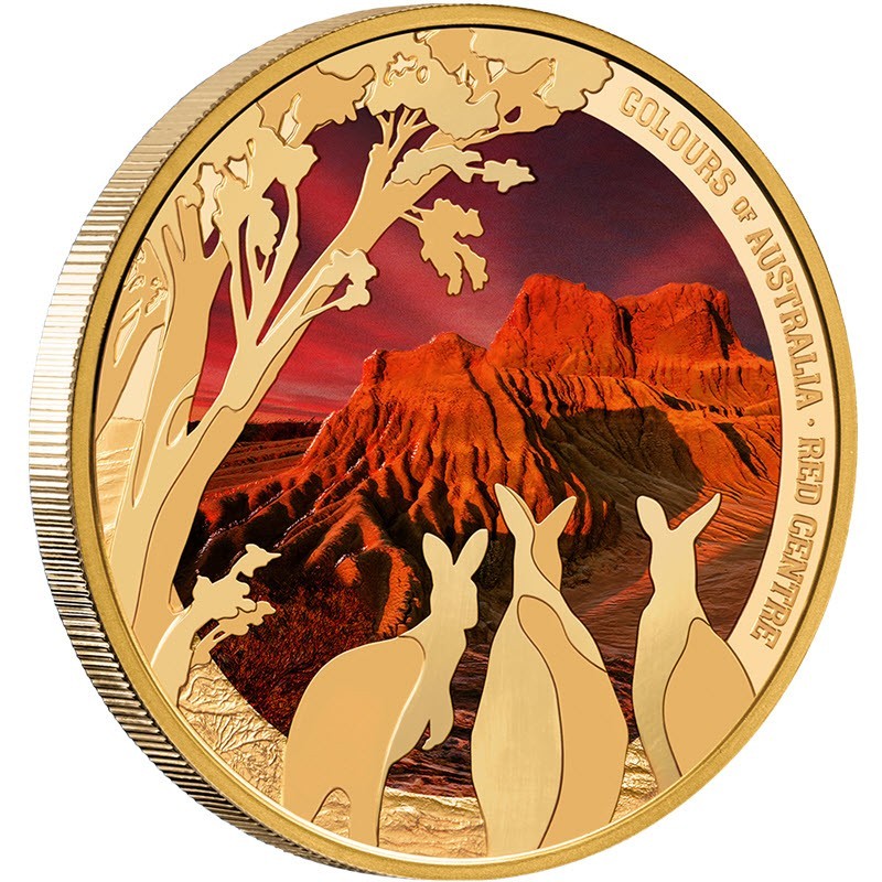 Эта удивительная золотая монета в 1 унцию – первая из серии «Цвета Австралии» и изображает Красный Центр, расположенный в самом сердце Австралии, известный своими потрясающими красными пустынными пейзажами и древними скальными образованиями. У нее качество пруф и селективная окраска. Поставляется в оригинальном футляре с пронумерованным сертификатом подлинности. Тираж: 99 штук.